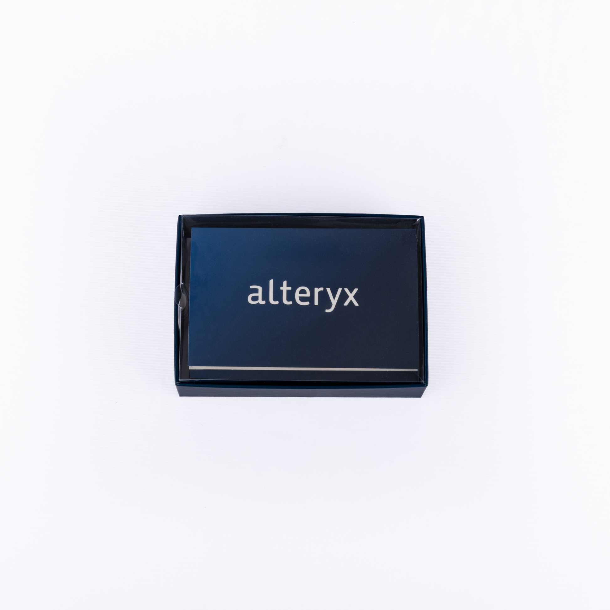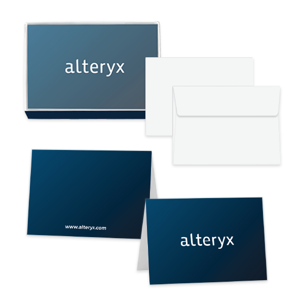 Send a personal thank you note using these Alteryx branded notecards complete with envelopes. Set comes with twelve 4”x6” notecards + 12 envelopes all packaged in an Alteryx branded box.