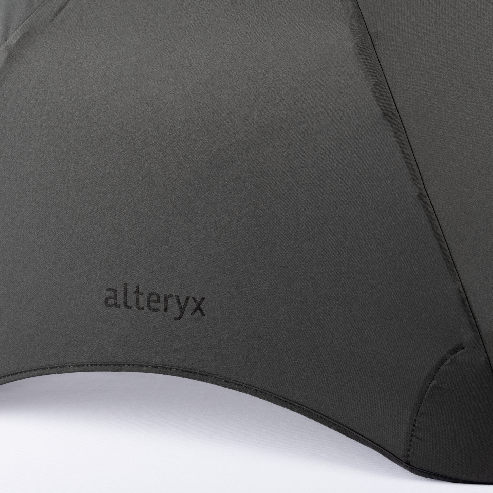 This Blunt-branded 37" umbrella features a black Alteryx logo and a sleek, aerodynamic design that stays steady in strong winds. Crafted with durable aluminum ribs and pole, a tensioned polyester pongee canopy, and a 2-stage collapsible, automatic open mechanism for easy use.