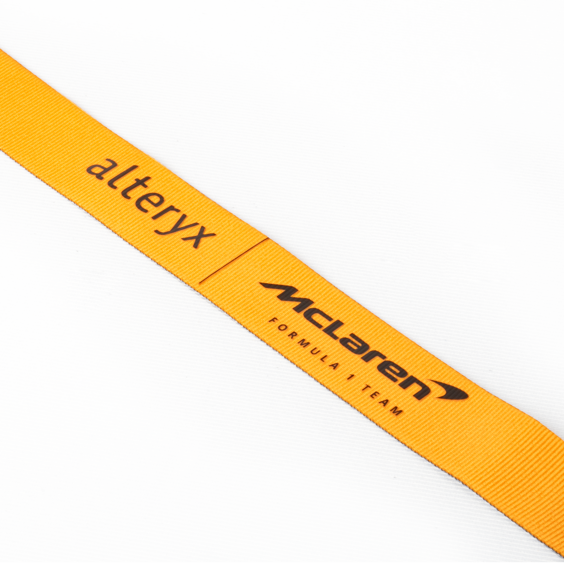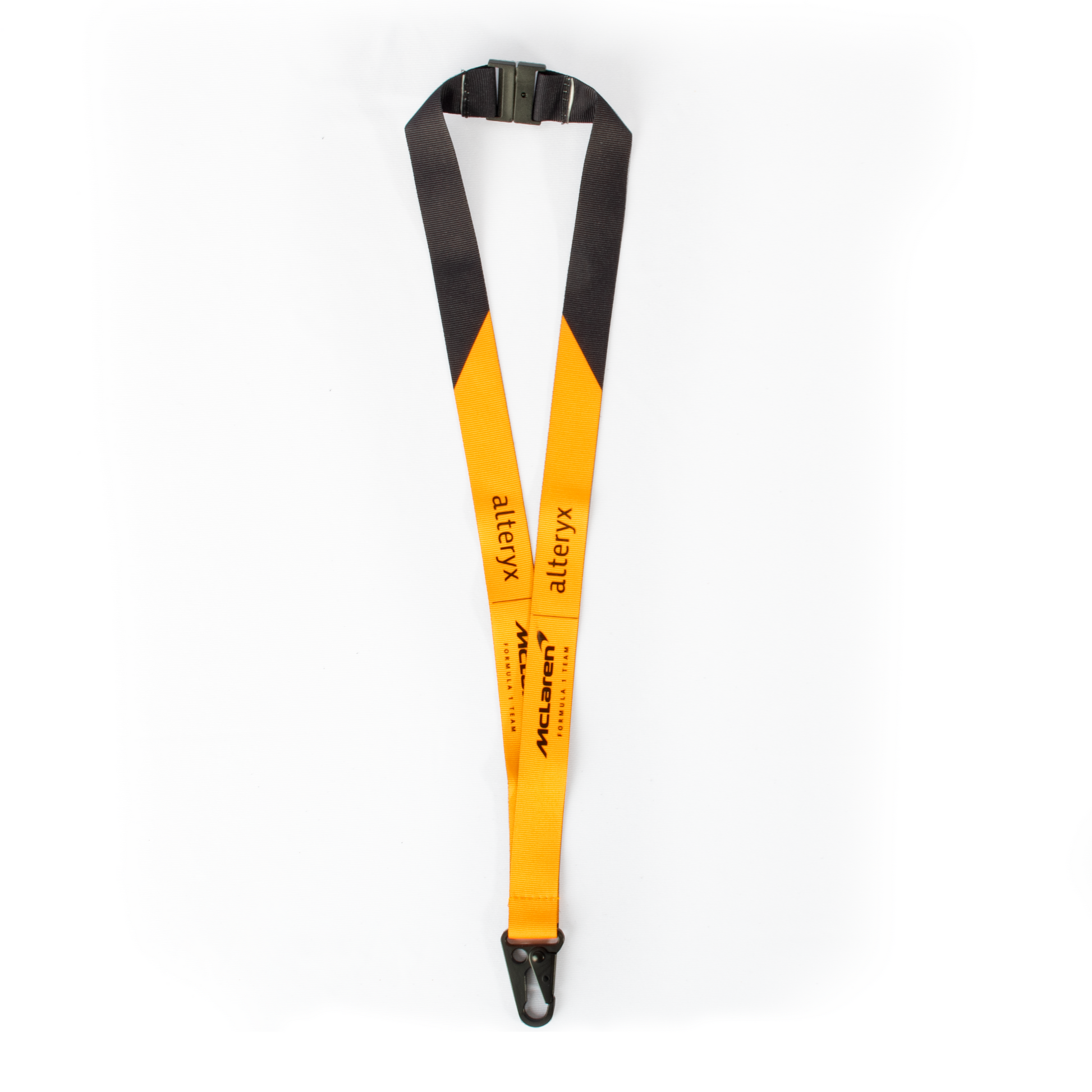 Show off this Mclaren X Alteryx branded lanyard and gear up for race day. Lanyard shis with metal clip.