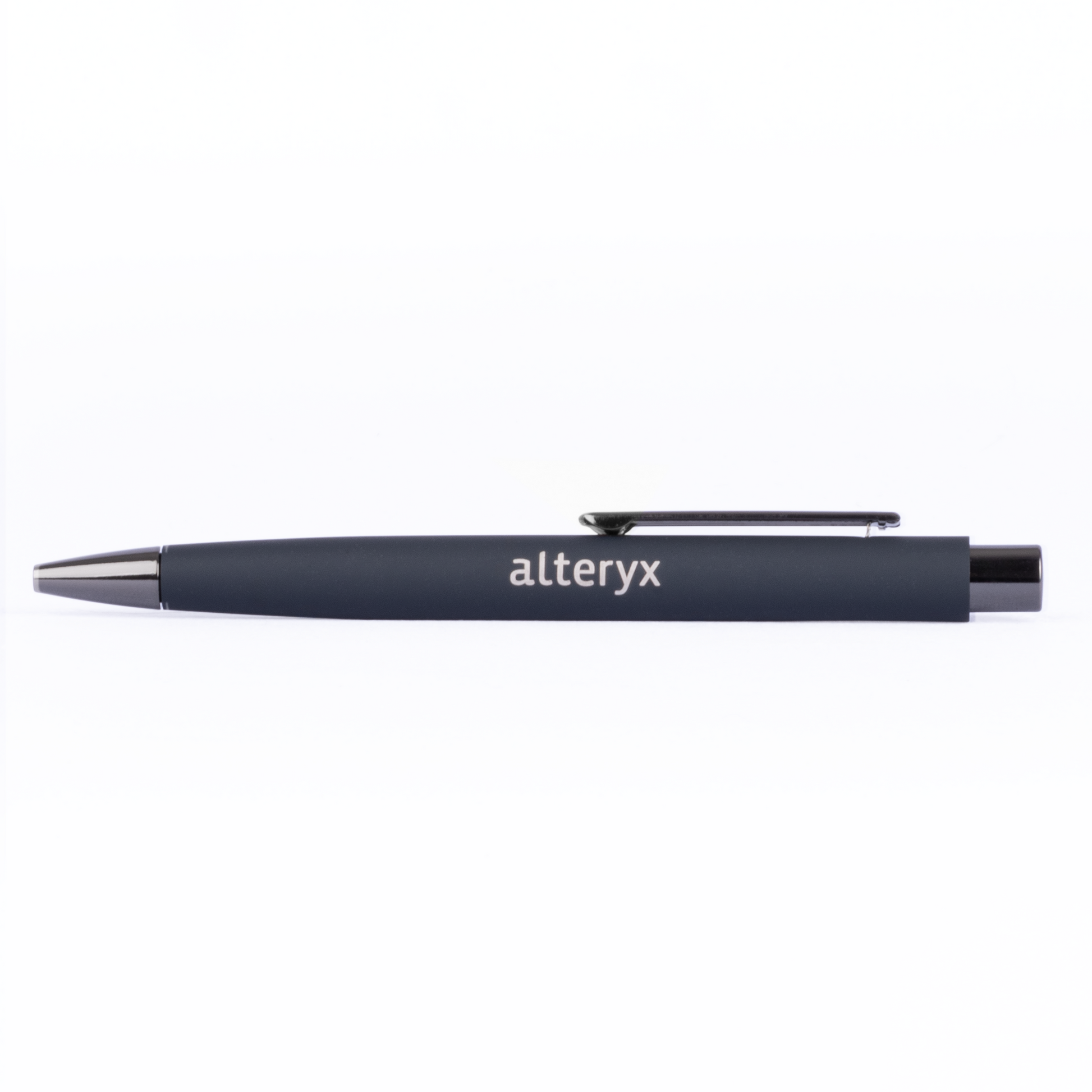 Capture your ideas on paper using this soft-touch, oval-shaped, retractable ballpoint pen. The pen features a laser-engraved Alteryx wordmark on the barrel.