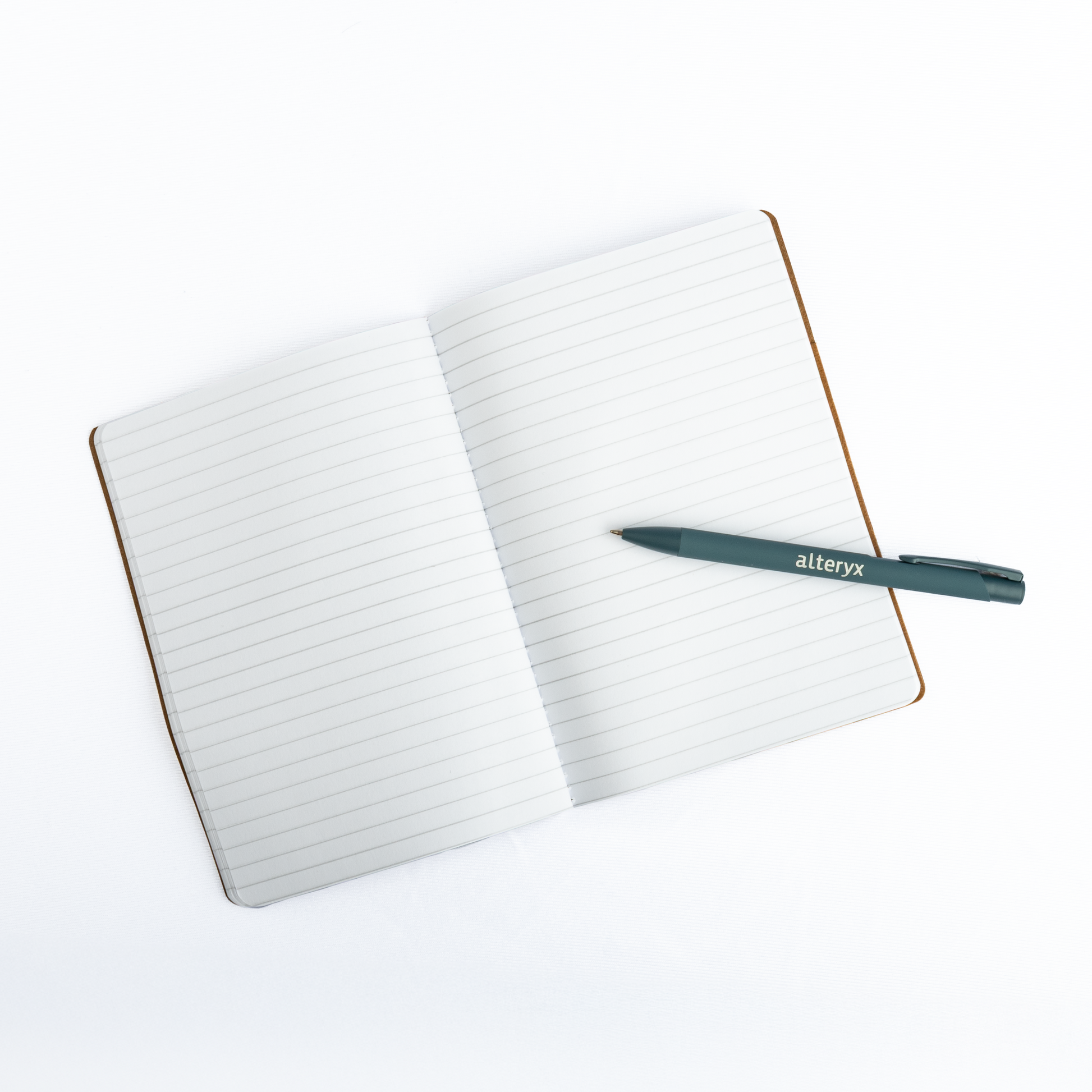 This eco-friendly 5x7” journal features recycled materials, 46 lined pages, and a stitched binding for durability. The debossed Alteryx logo adds a sleek, professional touch. Plus, 5% of proceeds support classrooms through DonorsChoose.com.