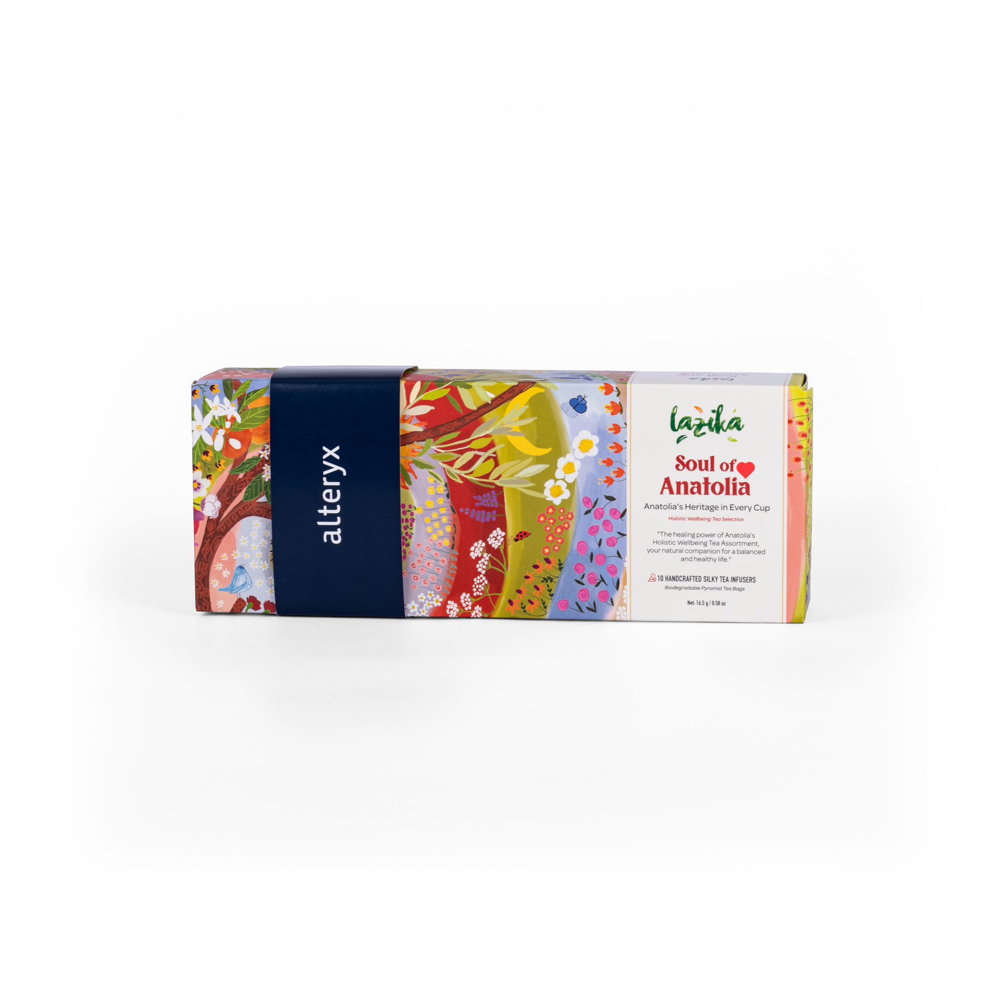 This elegant tea sampler box features 10 individually wrapped teabags from Soul of Anatolia, crafted in Turkey. Each set ships with an Alteryx-branded belly band, making it a refined and thoughtful gift for any tea lover.